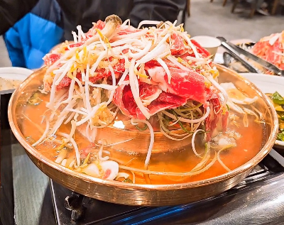 산더미 불고기 전골이 익혀지는 고기의 모습과 향은 군침을 돌게 했고,