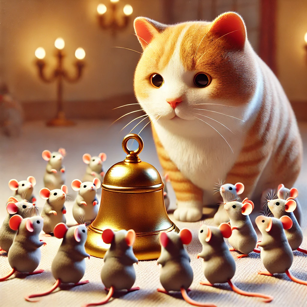 모두 이 제안에 동의하지만, 정작 누가 고양이의 목에 방울을 달지에 대해서는 아무도 나서지 않습니다.