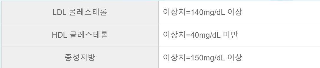 혈액 검사로 확인할 각 콜레스테롤의 값으로 진단합니다.