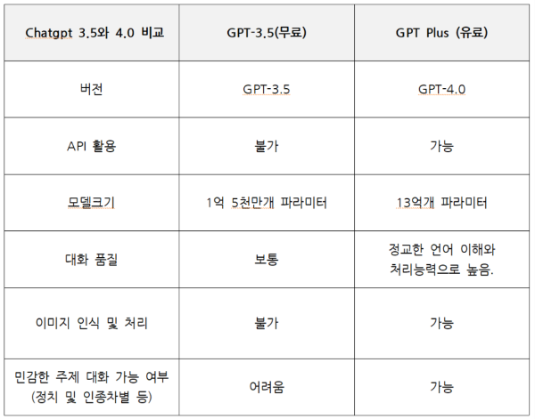 챗gpt 3.5(무료버전)과 챗gpt4.0(유료버전) 비교
